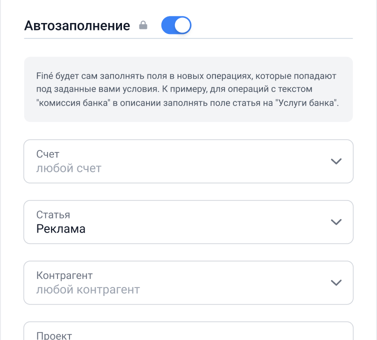 СкороНастройте правила для автоматического установления платежам счетов, статей, контрагентов и проектов. Автоматизируйте регулярные операции.